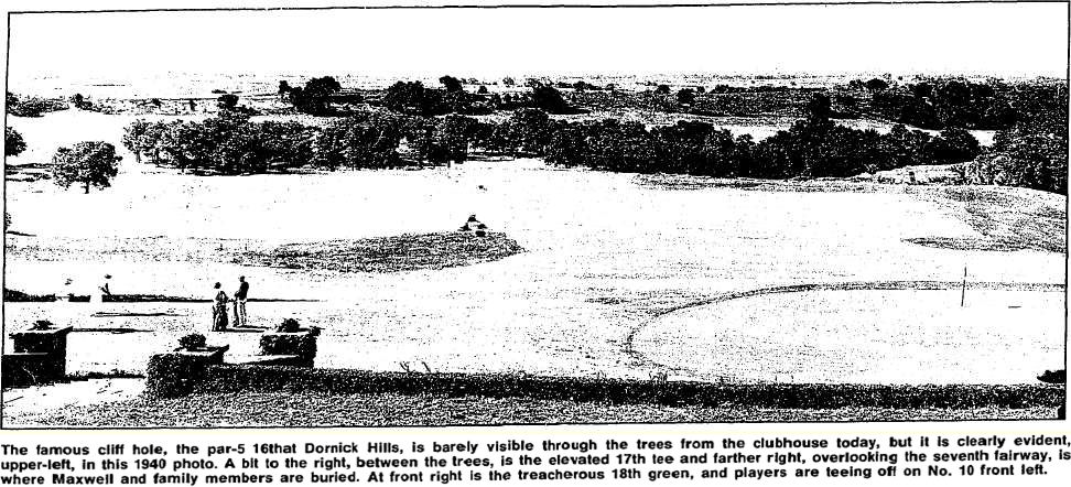 March 7 9th hole (currently the 18th) at Dornick Hills “is being revamped to penalize the wild swingers who come slicing up the fairway. Under the direction of Dean Woods, foreman of construction for Perry Maxwell, nationally-known golf architect, a sand trap is being installed on the west side. Another suggestion from Woods that will be carried out is the filling in and sodding of traps back of the famous cliff hole” (original #7, current #16). [Daily Ardmoreite, March 7, 1937]